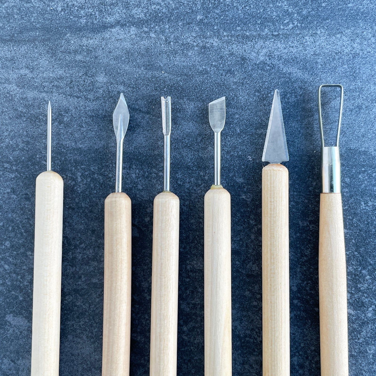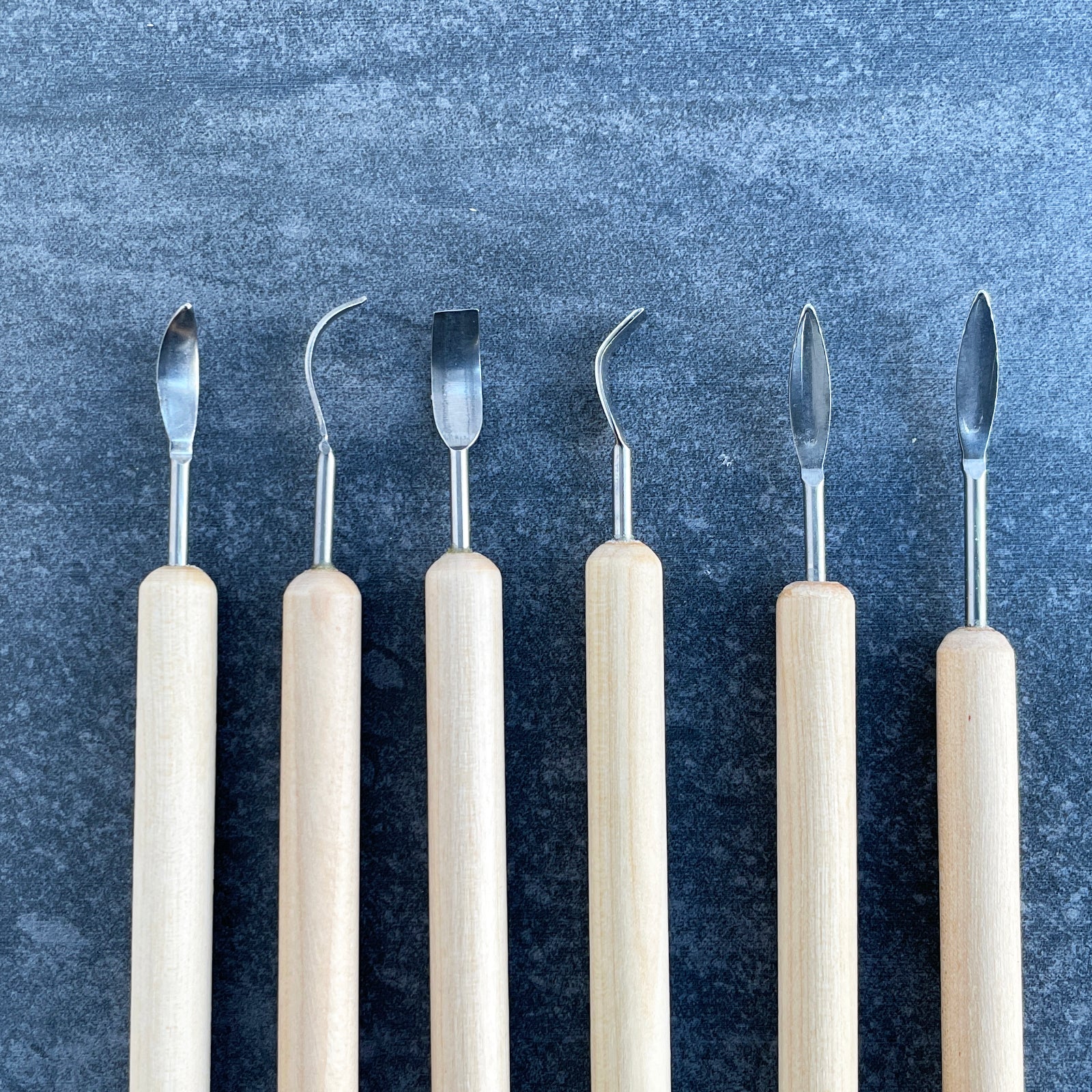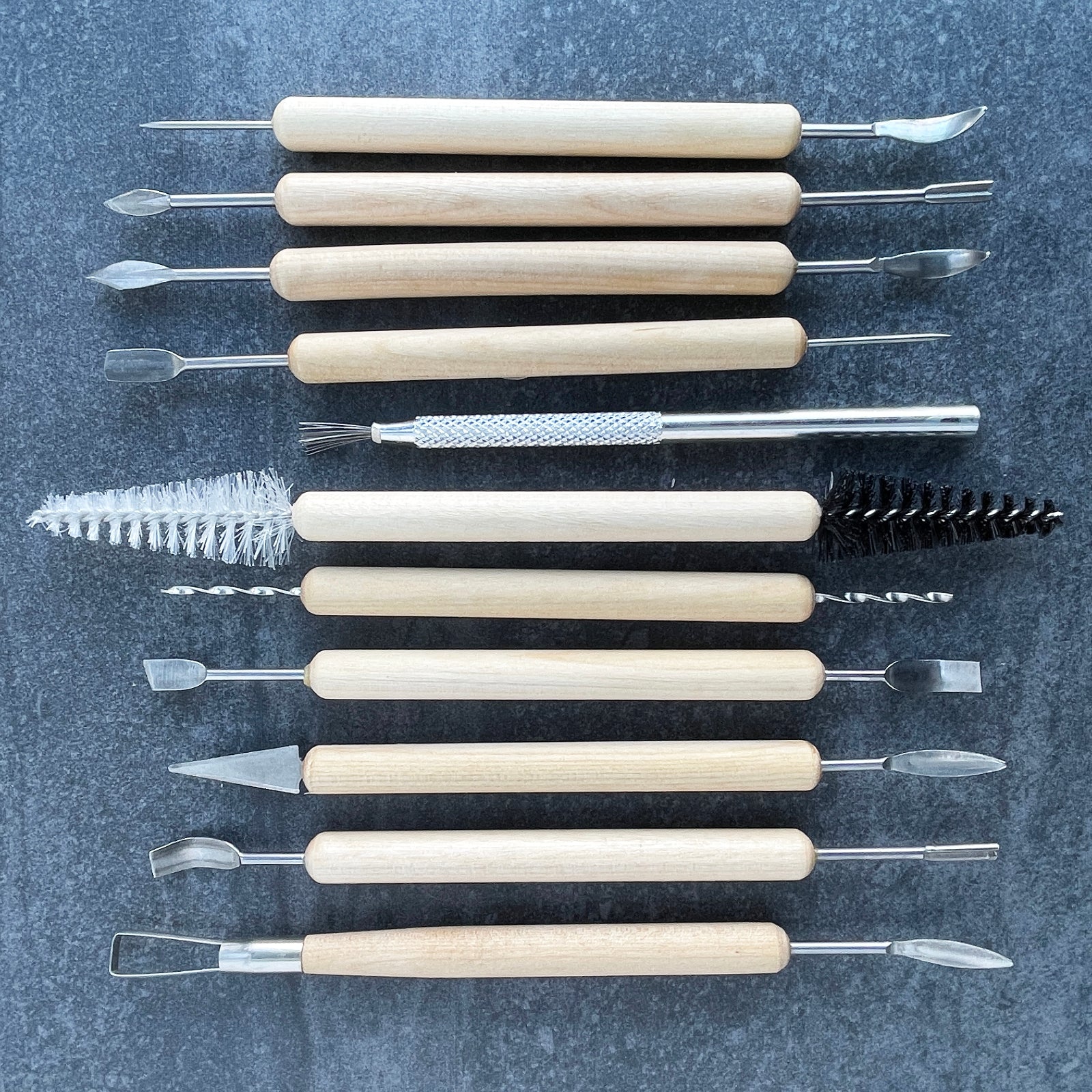 This set of eleven clay sculpting tools comes with ten double-ended tools with wood handles and one metal wire texture brush.